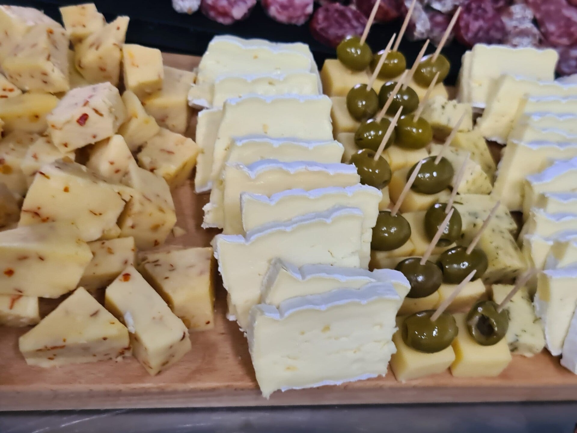 Luxe kaasplank , met mooie stukken brie,kaas met olijfjes, verschillende kaas